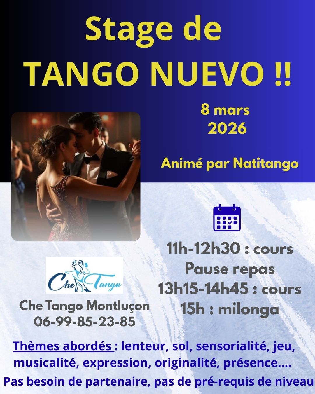 Actualités 2025-2026 : On parle de nous : Voir la vidéo de France 3 Auvergne 2024-2025 : 2023-2024 : 2022-2023 2021-2022 Rentrée 2021 Rentrée 2020 Stage de tango argentin avec Carolina Udoviko Rentrée 2019 J’aime chargement…